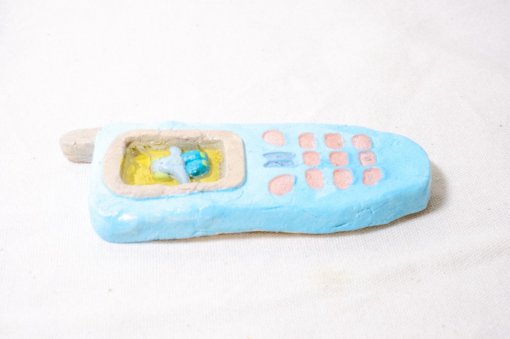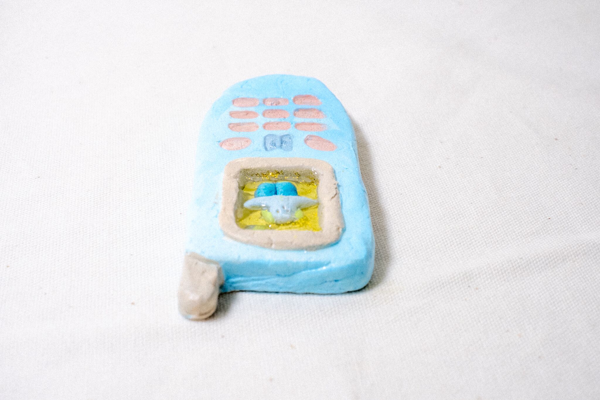 素材:石粉粘土、アクリル絵の具、レジン、ニス