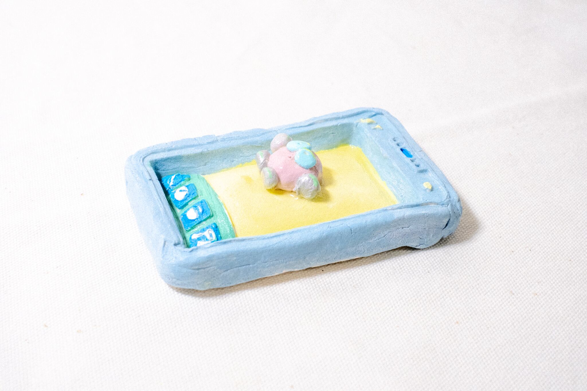 素材:石粉粘土、アクリル絵の具、レジン、ニス